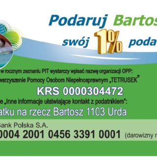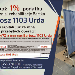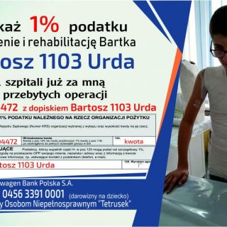 Pomóżmy Bartkowi Urda w 2021r to proste przekaż 1% od podatku